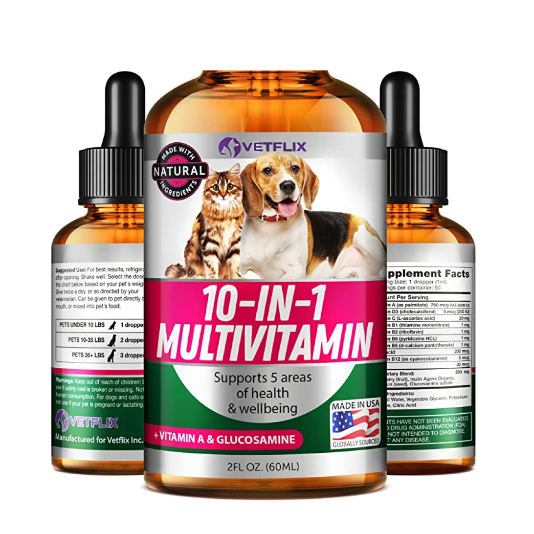 Vetflix Pet Vitamins 10 in 1 – Made in USA – Glucosamine for Dogs & Cats – Dog Supplement for Pet Joint Health